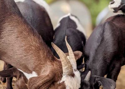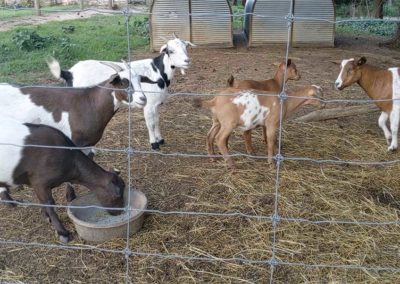 Our fainting goats are similar to other breeds of goats, although they generally run a bit smaller. We raise them not only for their meat, but also their highly digestible and delicious milk. We have found our does to be excellent mothers… having unassisted triplets and twins year after year.